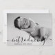 Introducing Script Custom Photo Collage Announcement is a very modern and cool way to introduce the new addition to your family. It is suitable for both girls and boys. The front is with a large photo with the introducing text in the black script and the baby name template. The back is a photo collage of 4 photos and birth stats and welcome text.
