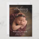 Elegantly sweet birth announcements feature your favourite newborn photo in full bleed, baby's name, birth stats and your names in white (or any colour and font you want.) Change the background colour to any colour that suits your photo. You can add more photos on the back, too!