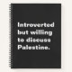 This is a special "Introverted but willing to discuss Palestine" saying design For Palestinians, Palestine lovers Pro-Palestinian, or, everyone who supports freedom and justice and fights injustice. To all supporters of the just Palestinian cause. Rise and support the liberation of Palestine and Gaza and the establishment of peace in Jerusalem. Designed by Peace Lover designers. Stop the Palestine-Israel conflict. Palestinian lives matter. (YOU CAN CHANGE AND CUSTOMIZE THIS TEXT DESIGN!).