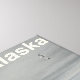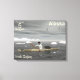 A postage stamp of a notional independant Alaska featuring an Inuit hunter paddling his kayak on a grey day. Text reading, "Alaska," "Postage 5 Nuggets," and "Inuit Qajaq" also appear.