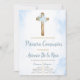 Blue Floral first communion invite in Spanish. Invitación de primera comunión para niño