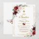Affordable custom printed baby Girl Baptism invitation. This pretty design has a watercolor red flowers with golden frame. Personalize the design with your child's Baptism party details. Reverse side has a gold cross with watercolor flowers or use the space to add additional text and photos. Click Customize It to choose any background color and edit the text fonts and colors to create unique one of a kind Baptism invitation for your baby girl.