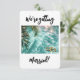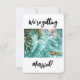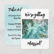 Serene, ocean scene with translucent aqua blue water and sunlight sparkling on the ripples. This tranquil backdrop is adorned with two gold wedding bands and lush green palm fronds. Customise the romantic text to fit your celebration.