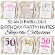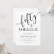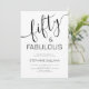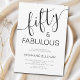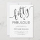 Fifty and Fabulous script, black and white, modern 50th birthday invitation that you can personalise and send out for your fiftieth birthday party celebration. The words "Fifty and Fabulous" are set using popular script font typography. The text colours can be changed using the edit menu.