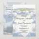 Are you free spirits who love to be outside where you can climb to the clouds and see the view from mountain tops? This is the invitation shows a mountain rising above the clouds. It is painted in watercolors and enhanced with graphic design, The colours are subtle blues, greens and greys. If you enjoy hiking, camping, climbing or being out in nature this design reflects your desires.