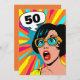 Invitation 50th birthday surprised woman pop art