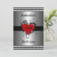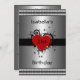 Invitation Birthday Red Heart on Silver with Black trim