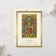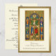 A traditional Catholic Ordination to the Holy Priesthood invitation with a beautiful image of a priest offering the Holy Sacrifice of the Mass at the altar. The border is a gold shimmer. All text and fonts may be modified. (Credit: www.ccwatershed.org/jogues)