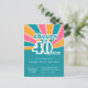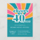 Add a bright, retro-inspired vibe to your 40th birthday event with these fun & flirty invitations. Simple to customise with all the party details. Chunky vintage lettering with a colourful blue, yellow and pink background with the text: "cheers to 40 years".