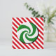 Vibrant, bold "candy cane" stripes are the colourful backdrop for the verdant green of the "wintergreen mint" on top. Diagonal stripes and contrasting swirls bring a terrific touch of whimsy to this fabulous holiday invitation! I have enlarged the stripes to widen them, but you are welcome to manipulate the width of the stripes or the size of the "mint" to better suit your aesthetic. Don't forget to include your pertinent information (date, time, location, etc.) on the reverse side of the invitation. Though offered here on basic stock, there are numerous paper types and colours available.
