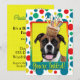 Invite your guests with this whimsical Boxer Dog Greeting Card. With a cupcake balanced on it's head, this design is sure to bring a smile and giggles! BTW, This design has several versions, with different background colours. There is also a Happy Birthday version.