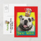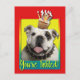 Invite your guests with this whimsical Bulldog Greeting Card. With a cupcake balanced on it's head, this design is sure to bring a smile and giggles! BTW, This design has several versions, with different background colours. There is also a Happy Birthday version.