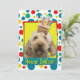 Invite your guests with this whimsical GoldenDoodle Dog Greeting Card. With a cupcake balanced on it's head, this design is sure to bring a smile and giggles! BTW, This design has several versions, with different background colours. There is also a Happy Birthday version.
