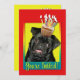 Invite your guests with this whimsical Pug Dog Greeting Card. With a cupcake balanced on it's head, this design is sure to bring a smile and giggles! BTW, This design has several versions, with different background colours. There is also a Happy Birthday version.