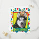 Invite your guests with this whimsical Siberian Husky Dog Greeting Card. With a cupcake balanced on it's head, this design is sure to bring a smile and giggles! BTW, This design has several versions, with different background colours. There is also a Happy Birthday version.
