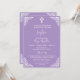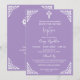 A lilac invitation with a white floral cross and corner flourishes for baptism or christening. Personalise the details and change baptism to christening if preferred. Part of the Floral Cross Collection.