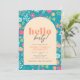 Cute neon florals in a distinctive retro style make this birthday party invitation pop! Blending pastel, pink, orange and blue on a vibrant blue background. A simple, yet chic invitation with the words "Hello, forty!" but can be edited for any age. It's easy to customise this design with all of your party details.
