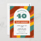 Get groovy for your milestone fortieth birthday with this retro design. Impactful colours of dark red, teal blue, pink and yellow bring a 1970s vintage aesthetic. Personalise it with your name and all of the event details: "(Name) is turning 40. Let's celebrate!" (Note: if you like this design, you can customise it for any age!)