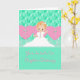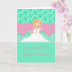 Invitation to our baby daughter's Christening, with an illustrated baby girl with pink hearts, crosses and a green heart background. The words on the inside can be changed. Thanks to the Hungryjpeg and Creative Fabrica for some of the elements in the design.