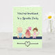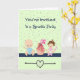 Invitation to a Sprinkle Party. The design has two babies illustrated, a boy and girl sitting by a large Cup Cake with sprinkles added to the background. There is also a heart with sprinkles in the centre. The party is like a baby shower, but is for a second child up.