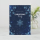 An enchanting Christmas party invitation featuring a deep blue night sky filled with shimmering stars and a magical, swirling glow. Golden text reads 'Christmas Party,' accented with delicate hanging stars, while two elegant golden reindeer gaze upward. Snow-dusted fir trees frame the scene, enhancing the cosy, festive atmosphere. This design evokes a sense of wonder, warmth, and holiday cheer, perfect for inviting guests to a memorable Christmas celebration.