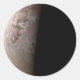Io is the yellow volcanic moon of Jupiter. The yellow is sulphur, and the black and orange splotches are volcanos.