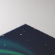 An aurora, green due to ionised oxygen, appears low on the horizon, a city sits in the foreground. Add your own text.