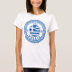 IOS, Greece women's T-Shirt featuring the National Flag Of Greece inside an Ancient Greek pattern circle symbol. Enjoy wearing this T-Shirt while you're on vacation on the beautiful IOS island or give it as a gift souvenir.
