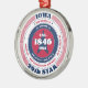 Show your state pride this holiday season with this unique Christmas ornament dedicated to Iowa, the 29th state. It has red, white, and blue patriotic colours with a circular typography design on a white background. The text includes facts about the state, such as its name, capital, state abbreviation, region, time zone, geographic coordinates, the year of its statehood, and its resident's name. It's a great gift for those who wish to celebrate their state or for those who are feeling nostalgic about their home state.