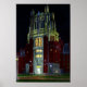 Vintage image of the University of Iowa Medical Centre at night in Iowa City, Iowa.