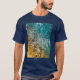 I give wanted to give this a 4 instead of a 5 because these Basic DARK T0shirts run unexpectedly SLIM or Narrow. Which is great if you do not have a potbelly, but I have a paunch. It isn't the shirt's fault that I've got a beer belly. The design and shirt itself is a quality cotton shirt. The color is more of a deep purple, but still a very pretty color. The Basic DARK T-shirts run a bit SLIMMER than the Basic Ts. The neck is a fraction narrower (or seems to be narrower) also. I'm a paunchy middle-aged woman and my neck is 12 inches (31cm) thick and the neckline fell about the same as in the photo of the man, and I had the desire to tug it a bit. So if you're a thick necked man or like loose shirts, be aware these are slimmer shirts. Once I get rid of my lockdown paunch it'll look great. The shirt washed well in cold water with no apparent bleeding. We don't have a dryer, so it hung dry. Did not shrink. Love the colors and the design. The design looks smaller on my shirt than it does on the model on-line. But still, it looks good on the shirt. The printing looks as it does on the model, just the size seems fractionally smaller. Washed garment in cold water, hung dry and design appeared unaffected.