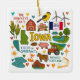 Commemorate your trip to the state of Iowa with this modern keepsake Christmas ornament, featuring hand-drawn style illustrations of iconic food, animals, landmarks, landscapes, and culture. Personalise the back to mark your US adventure and create a memory you'll hang up on the tree for the Holidays year after year.