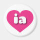 This magnet features a vibrant hot pink heart containing the bold, white, rounded lower case letters ia, a playful abbreviation for the state of Iowa, the hawkeye state.