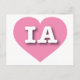 This postcard features a vibrant pink heart containing the bold, white, upper case letters IA, the official abbreviation for Iowa, the hawk eye state. The reverse side of the postcard is blank awaiting your handwritten sentiments or customised text. Choose font style, size, and colour.
