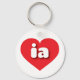 This key chain features a vibrant red heart containing the bold, white, rounded lower case letters ia, a playful abbreviation for Iowa, the hawk eye state.