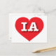 This postcard features a vibrant red heart containing the bold, white, upper case letters IA, the official abbreviation for Iowa, the hawk eye state. The reverse side of the postcard is blank, awaiting your customised text or handwritten sentiments.