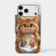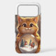 This charming illustration features a cute, wide-eyed orange cat holding a glowing snow globe containing a tiny snowman and a festive winter scene. Warm, cozy lighting and detailed artwork make this case a perfect seasonal accessory for cat lovers, Christmas fans, and anyone who enjoys whimsical art.