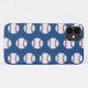 iPhone 11 case shown in blue with a sporty baseballs graphic design.