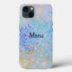 iPhone tough 13 case in colourful splatter dots. The name on the case can be changed.