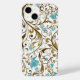 iPhone 14 case is shown in a blue and white modern floral graphic print design.