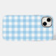 A tough and protective case for the iphone 14 plus in sweet neptune blue and white gingham.