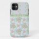 A chic Case-Mate Case to personalise for your iPhone 5/5s, with a pretty, nostalgic pattern of pink dogroses on a sky blue background, teamed with a matching striped pattern. Part of the Posh & Painterly 'Rosy Posy' collection.