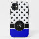 Men's or ladies polka dot monogram iPhone 5 case with black and white background and blue accent colour you can customise. Lightweight construction conforms to your iPhone in style and has openings for all connections and buttons.
