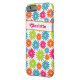 This personalised white Case-Mate custom iPhone 6 case has a funky floral pattern in lime green, turquoise blue, hot pink, and orange with a white band to add your name, initial, monogram or other text to. This modern and trendy new case makes a fun statement for the hip young fashionista! If you need assistance, email niteowlstudio@gmail.com.