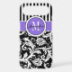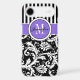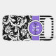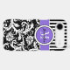 This personalised black and white Case-Mate custom iPhone 6 Plus case has a floral damask and striped background pattern with a lavender purple and white band and circle to add your name, initials, monogram or other text to. This modern and trendy new case makes a chic statement for the hip young fashionista! If you need assistance, email niteowlstudio@gmail.com.