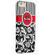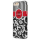 This personalised black and white Case-Mate custom iPhone 6 Plus case has a floral damask and striped background pattern with a red and white band and circle to add your name, initials, monogram or other text to. This modern and trendy new case makes a chic statement for the hip young fashionista! If you need assistance, email niteowlstudio@gmail.com.