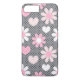 This personalised pink, white, and grey Case-Mate custom iPhone 7 Plus case has pink and white hearts and daisy flowers on a grey background with a black polka dots pattern!