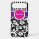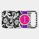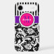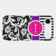 This personalised black and white Case-Mate custom iPhone 7 case has a floral damask and striped background pattern with a hot pink, purple and white band and circle to add your name, initials, monogram or other text to. This modern and trendy new case makes a chic statement for the hip young fashionista! If you need assistance, email niteowlstudio@gmail.com.