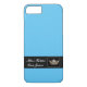 iPhone 7 case shown in blue with a black accent strip with a Miss America pageant style crown and custom name and title. Customise this item and change the text to what you need.