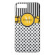 This personalised black and white Case-Mate custom iPhone 7 case has a fun polka dot, striped background pattern with a golden mustard yellow and black giraffe print band and circle to add your name, initials, monogram or other text to. This modern and trendy new case makes a chic statement for the hip young fashionista! If you need assistance, email niteowlstudio@gmail.com.
